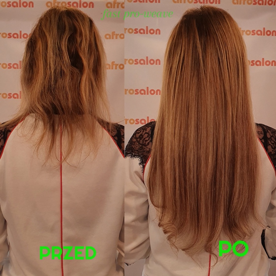 Metoda ” pro-Weave on” jest SZYBKA WYGODNA PEWNA i TANIO: założenie trwa około 1 godzinę i metoda ta jest najmniej inwazyjna dla włosów własnych. Metoda przyszywania taśmą jest mało znana w Polsce, ale bardzo popularna na całym świecie.